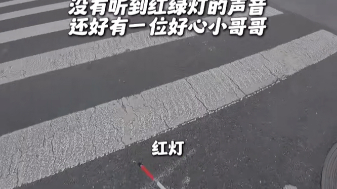 博主在视频结尾说,失明之后,许多声音变得尖锐,但那天辅警的哨声、脚步声,还有那句“我带你去”,是她这一年听到最温柔的声音。