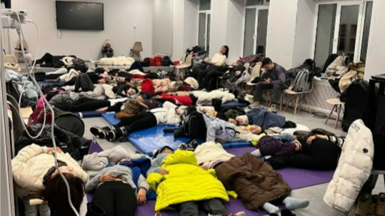 孙女士说:“简单吃了晚饭后,我们被安排到捷里镇上唯一一所学校,这所学校已经成为安置点,有暖气,热水,厕所。这应该都是当地政府安排的,小食堂一直在免费提供水、咖啡、面包、火腿、芝士、意面等食物,里面一层二层已经有不少中国游客在等待。”