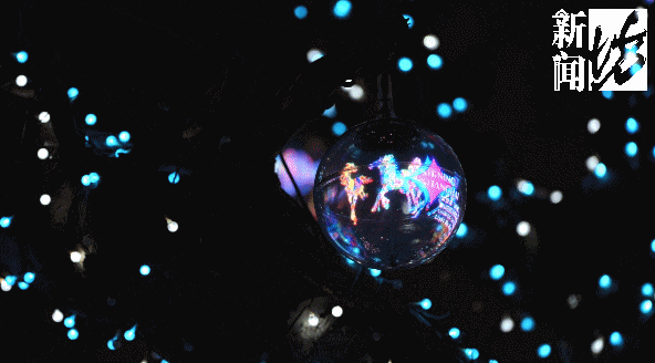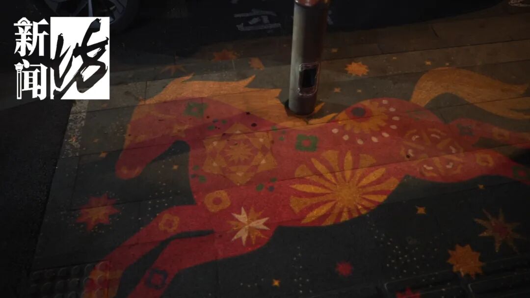 沿着南京西路走去,沿线的全息球灯内,徐悲鸿IP衍生的彩色奔马正在光影中跃动;