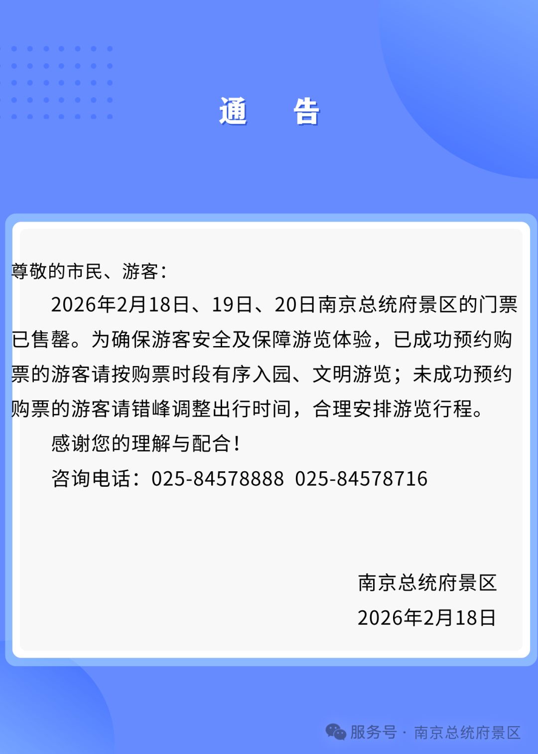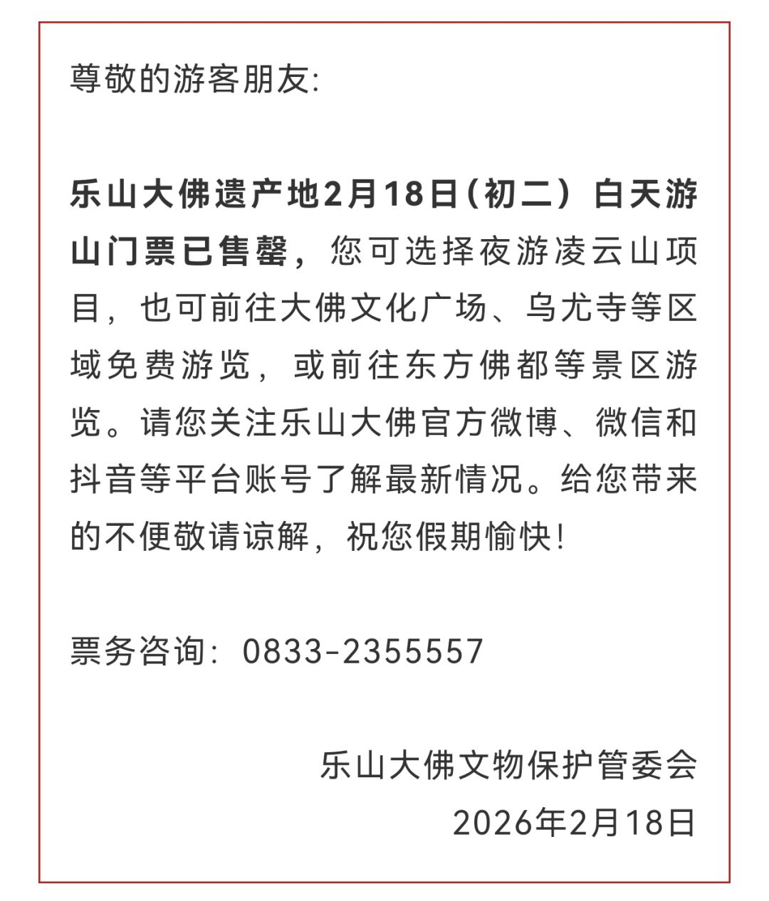已成功预约购票的游客,请按预约时段有序进入景区游览。给您带来的不便,敬请谅解,感谢您的支持与配合!祝您旅途愉快。