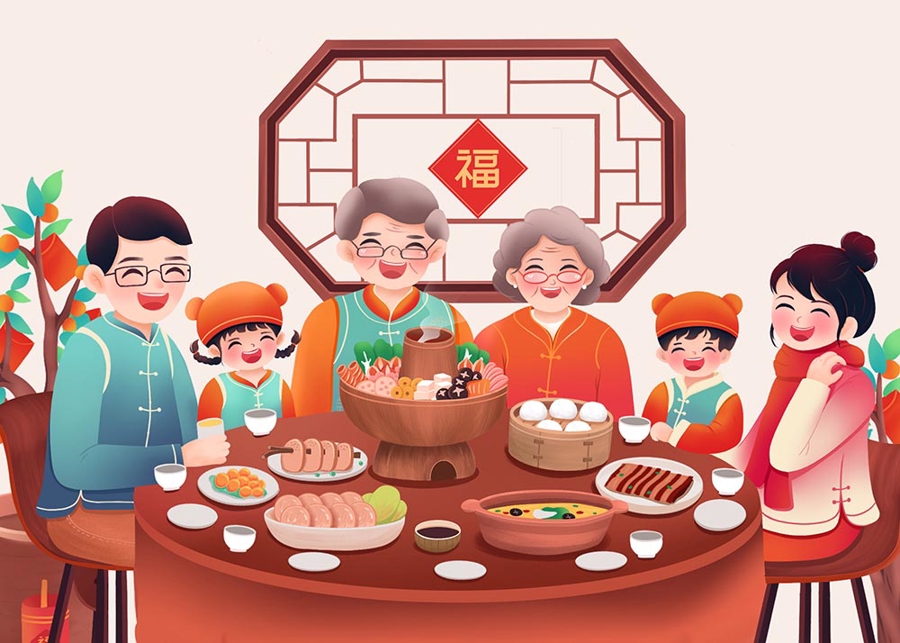 春节期间的互动,恰如一轴慈孝图缓缓展开,铺绣着长辈对小辈的怜爱之心,缱绻着小辈对长辈的感恩之情。年夜饭,总是被父母准备得妥妥的。虽说,父母年纪大了,每道菜要亲自做已经不太可能,但关键的几道年菜、一些加工的关键环节,母亲还是会拄着拐杖守在那里,以便随时上灶掌勺。母亲笑着说:“‘家乡菜能锁胃’,年菜走了味而锁不住胃,又怎么锁得住回老家的心呀!”听罢母亲的话,大家点头称是。