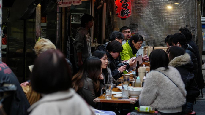 2月20日,在日本东京,顾客在一家餐厅用餐。新华社记者贾浩成摄