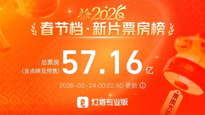 原标题:《2026年春节档总票房突破57亿元,《飞驰人生3》贡献过半》