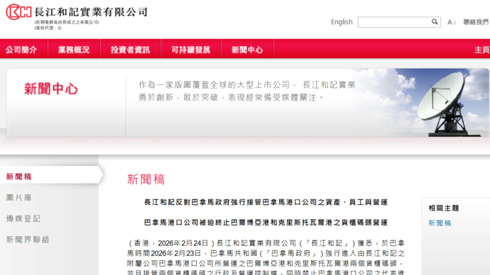 公告称,2026年2月24日,长江和记实业有限公司(“长江和记”)获悉,于巴拿马时间2026年2月23日,巴拿马共和国(“巴拿马政府”)强行进入由长江和记之附属公司巴拿马港口公司所运营的巴尔博亚港和克里斯托瓦尔港两个集装箱码头,并且接管两个集装箱码头的行政及运营控制权,同时禁止巴拿马港口公司之代表进入该两个集装箱码头。