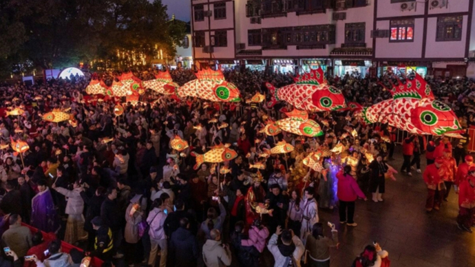 农历大年初一,游客沉浸式体验鱼灯游园活动 图片来源:央视新闻