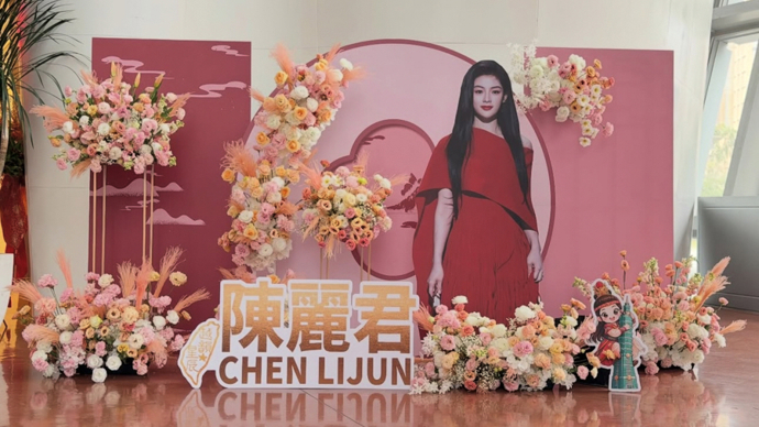 “越韵颂春,心艺相通”——2026浙江小百花越剧院(浙百团)台湾巡演,刚刚完成此行的首场演出。场内座无虚席,场外戏迷们亲手搭建的应援花墙,也早已被围得水泄不通。