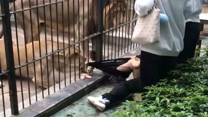 原标题:《女童投喂狮子突遭袭击!裤脚被狮爪紧抓哭得撕心裂肺!饲养员违规,动物园回应》