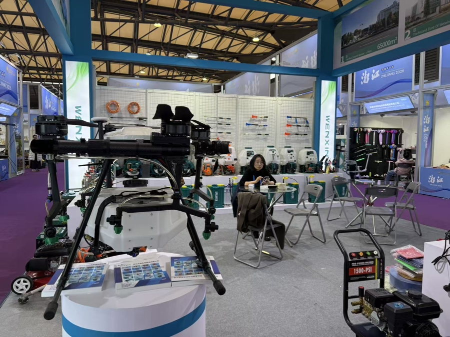 在农机展区,浙江文信机电制造有限公司此次发布了G20植保无人机,开启农耕智慧“飞行模式”。展位负责人介绍,这款新品采用锂电池纯电驱动,搭载智能化系统,可实现点对点的农业植保喷洒、施肥、播种等自主作业,使用后还能直接用水冲洗:“我们公司产品拥有50多项专利,产品远销全球60多个国家和地区,近年来正加速布局欧美及共建‘一带一路’国家。”