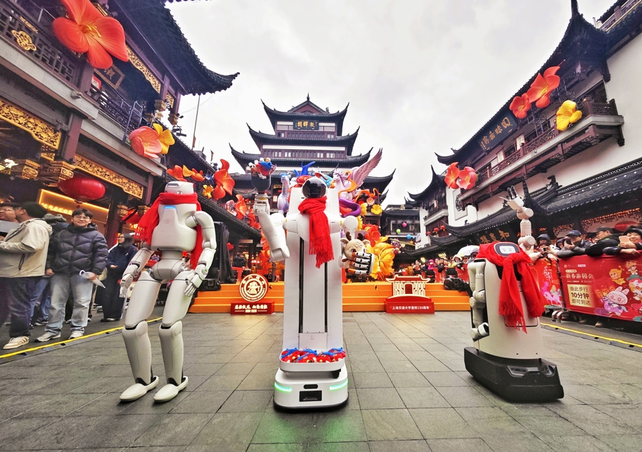 在由上海交大、上海人工智能研究院孵化的具身智能创业企业打造的智能互动区,市民争相与机器人合影,用镜头定格传统与现代碰撞的珍贵瞬间。上海交大、上海人工智能研究院院长宋海涛表示:“具身智能机器人不仅能用温暖的笑容拉近科技与公众的距离,还能像文化的使者一样讲述交大百年校史与豫园风韵,更亲手向大家展示承载着交大精神的文创展品。我们看到的不仅是技术的精度,更是情感的温度。希望以人工智能为笔,既书写前沿科技突破的‘大文章’,也描绘文化传承的‘新画卷’,让科技创新真正成为有温度、有底蕴的力量。”