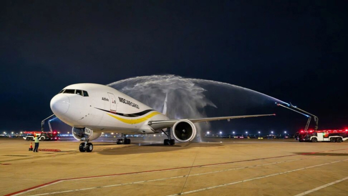 3月4日01:34,意大利地中海航空货运CP251航班满载货物平稳降落在上海浦东机场,并穿过象征民航最高礼遇的“水门”,标志着地中海航空货运在境内的首条航线正式开通。05:29,该航班载货再次从浦东机场起飞,前往米兰马尔彭萨机场,为中欧两地经贸往来和强化上海机场全方位门户复合型功能注入新动能。
