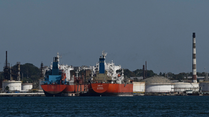 2月25日,船只停靠在古巴哈瓦那湾的一个炼油厂码头。