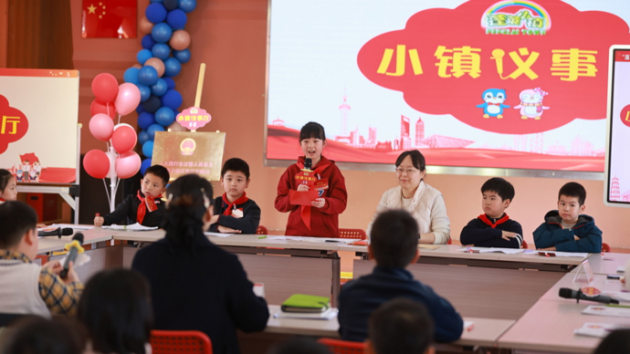蓬莱路二小议事厅,学生们讨论课间15分钟玩什么、怎么玩