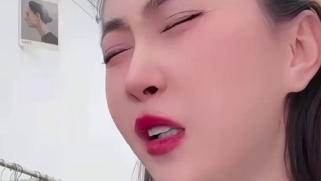 直播过程中她数次出现痛哭表情,手扶脖子和头部还有胸口。