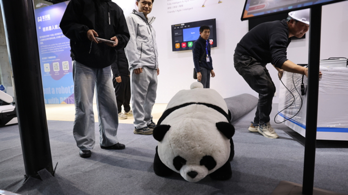 扮演可爱大熊猫的四足机器人。袁婧摄。