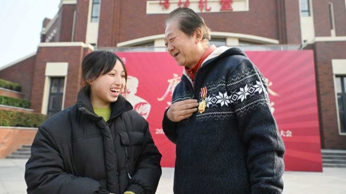 今年,学校首次为校外人士颁发“弘扬雷锋精神金质奖章”,为雷锋精神的传播者和践行者陶克将军和社会爱心人士王毅老先生颁奖。王毅老先生是著名文物鉴定专家,更是数十年如一日资助困难学子的“上海爷叔”,2025年因“千里接贵州姑娘上大学”的感人故事与建桥结缘,成为贫困学子小顾的“王爷爷”。他说:“雷锋也是普通人,他把普通的事情坚持做了一辈子,就成了不普通。我也是普通人。我能做的,就是要以雷锋同志为终身榜样,尽我所能,把这个捐赠之路走到底。”
