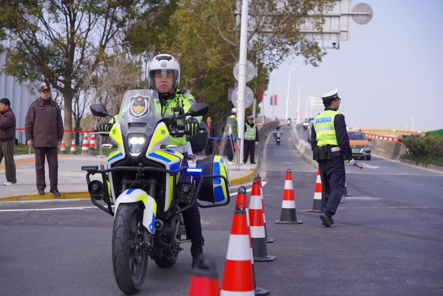 展会期间,浦东警方民辅警将全时段坚守在两大展区各个岗位,穿梭于展馆内外、街巷路口,既当好守护安全的“守护者”,又做好服务群众的“贴心人”。无论是展区内的巡逻防控、秩序维护,还是外围的交通疏导、应急处置,“警察蓝”始终以专业担当、细致服务,守护每一位参展商、观展群众的安全。