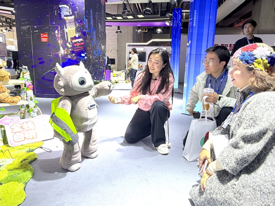 “阿莫”在AWE展会现场与观众互动。舒抒 摄