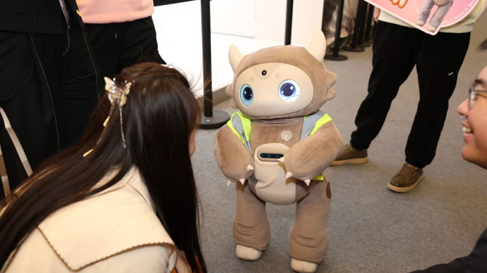 团队相关负责人告诉记者,陪伴式机器人不该是冰冷的机械造物,而是能让人放心靠近、自在相处的“家人”。因此,他们摒弃了传统机器人的硬核工业感,联手知名设计师与设计机构,为Amoo打造出萌趣的小龙人外观——在包覆材质上,团队首创了独特的毛绒软包覆设计,可爱的小龙角搭配水润的大眼睛,憨态可掬的模样让人初见便心生喜爱。