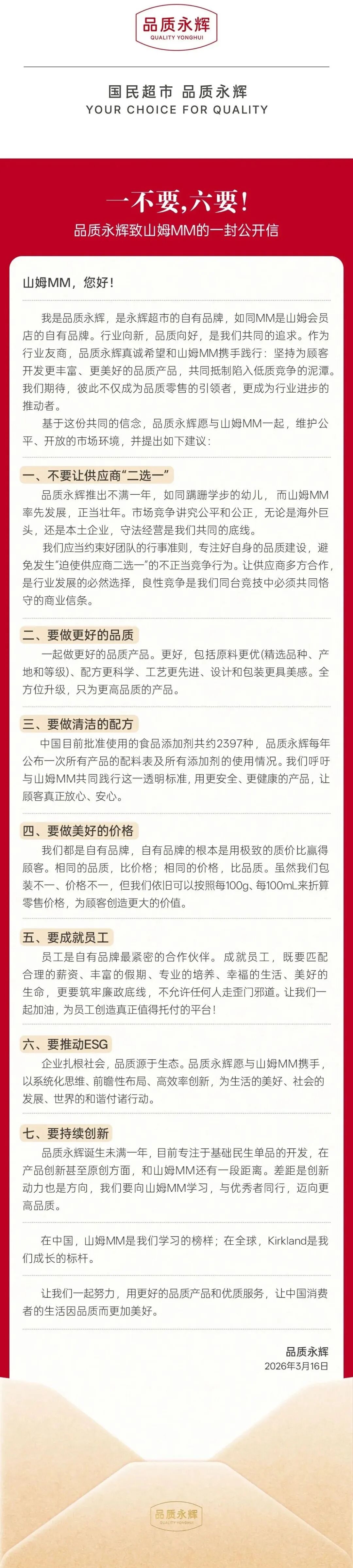 永辉发公开信喊话山姆