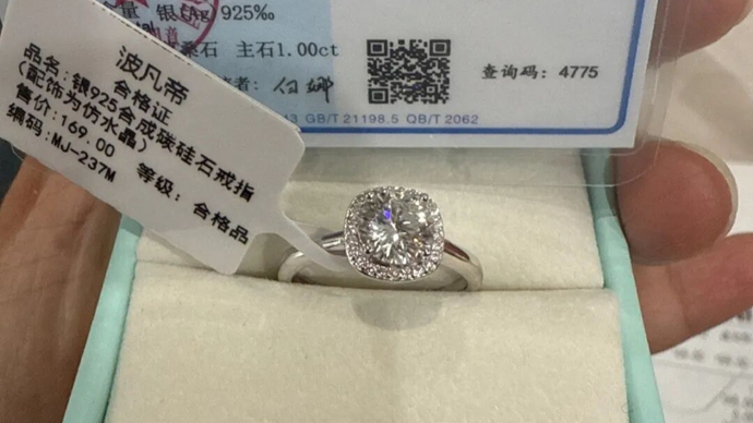 据此前报道,2025年,胖东来“小方糖”戒指爆火,因1克拉售价仅169元,被网友称为钻戒“平替”,引发抢购热潮。