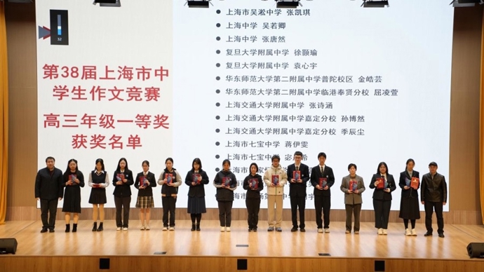 3月21日,由上海市教师教育学院(上海市教育委员会教学研究室)主办、华东师范大学语文教育研究中心承办的第38届上海市中学生作文竞赛颁奖大会在上海中学西区大礼堂举行。