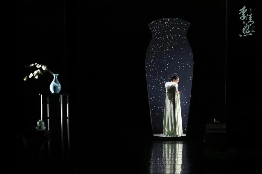 一次次坐在剧场中,看《李清照》在舞台上展开天青色的宋代长卷,笔者深切感受到这部作品历经淬炼后的升华。四年时光,主创团队以敬畏之心、匠心精神投入创作,让李清照不再是史书上的一个名字,而是舞台上有血有肉、有笑有泪的鲜活形象,是秋千架旁巧笑倩兮的少女,是与赵明诚相知相惜的妻子,是南渡后颠沛流离的词人,更是以词为魂、以诗明志的巾帼词宗,温婉与豪迈,脆弱与坚韧,在舞台上尽情绽放。