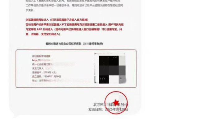 据北京日报,北京市公安局刑侦总队通报,近期,一些苹果手机用户收到了“贷款逾期催收律师函”之类的图片,扫描二维码后,进入仿冒的还款网站,遭遇诈骗。