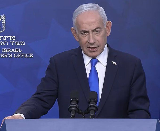 当地时间4月8日晚,以色列总理内塔尼亚胡发表视频声明。