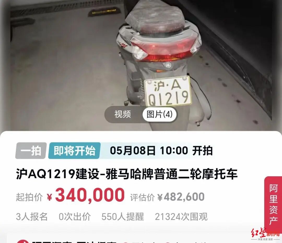 原标题:《车估值2500元,车牌估值48万!一辆沪A牌照摩托将法拍,起拍价34万元》
