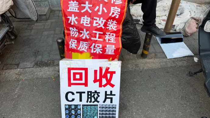 在北京西城区一个菜市场旁,一块“回收CT胶片”的招牌旁的摊主表示,他在北京干了20多年装修,今年春节后增加了回收CT片的业务,“因为前几个月银价上涨,CT片的回收价格也跟着水涨船高,从5毛钱涨到1块5,现在银价虽说下来了,但回收价没咋变。”