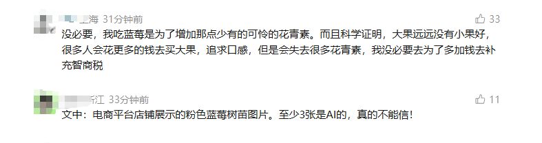 业内人士直言,市面上的粉色蓝莓树苗只是营销噱头,部分商家甚至用普通蓝莓苗、未驯化实生苗冒充粉色品种,消费者极易上当受骗。有种植户提醒,普通家庭切勿盲目购买粉色蓝莓苗木,不仅品种真伪难辨,管护难度也远超普通蓝莓,极易出现苗木死亡、只长叶不结果的情况。
