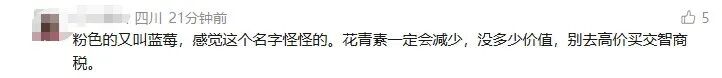 社交平台上,网友讨论粉色蓝莓。网络截图