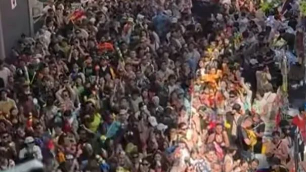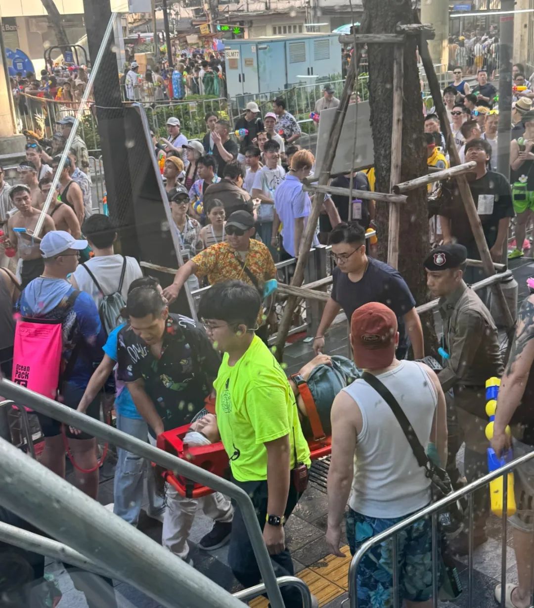 泰国泼水节,有人受伤被担架抬走