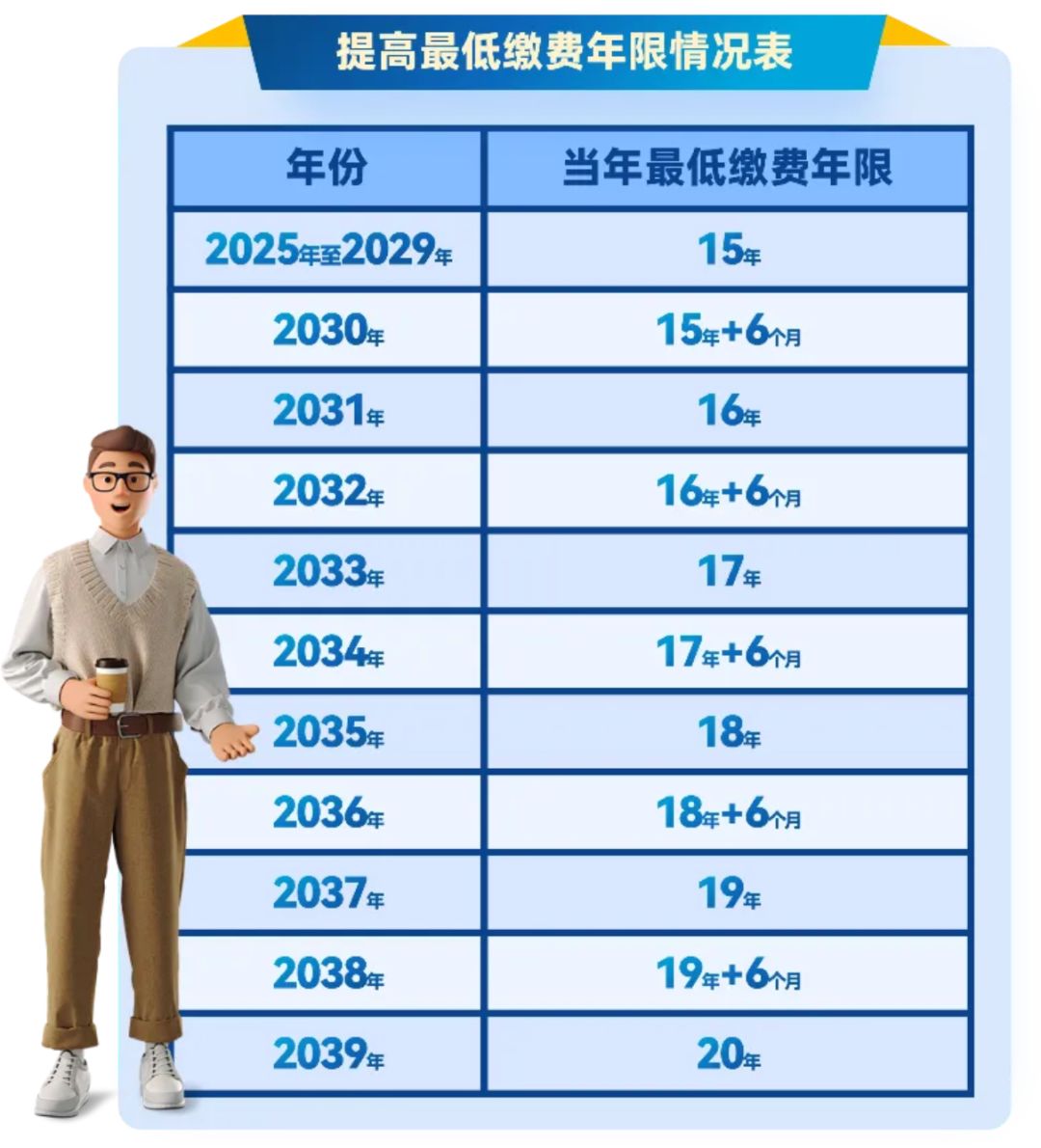 二是养老保险累计缴费年限达到国家规定的最低标准。目前最低年限是15年,从2039年开始提高至20年。