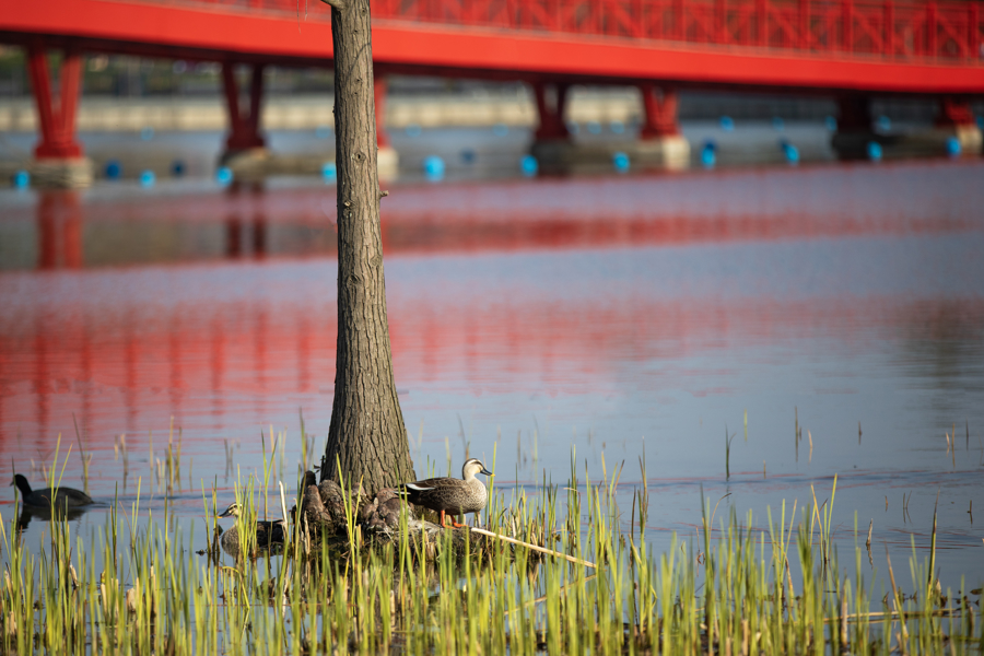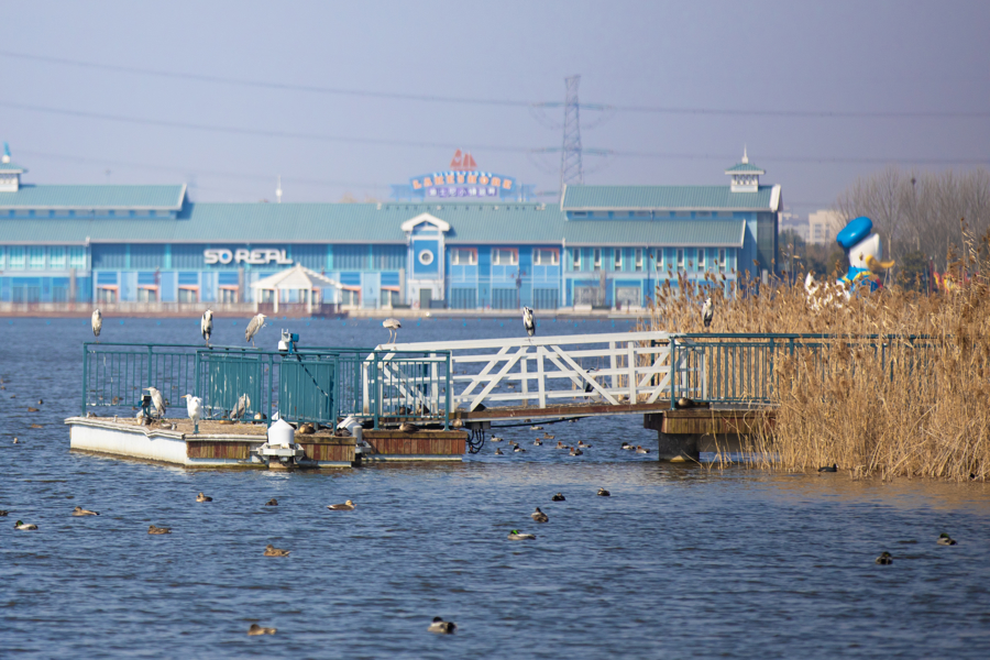 何鑫还提到,每年冬季,星愿湖上会有上千只野鸭聚集。有趣的是,湖面上常年漂浮着一只巨大的唐老鸭卡通形象。“野鸭和唐老鸭的亲戚们,在同一个水面过冬。”