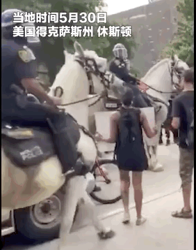 当地时间5月30日,有网友在推特上发布了一段得克萨斯州休斯顿抗议人群遭到骑警踩踏的视频,视频显示,一名警察骑着马从一名参加抗议的女子身上踩了过去,瞬间引发周围围观群众激烈不满。