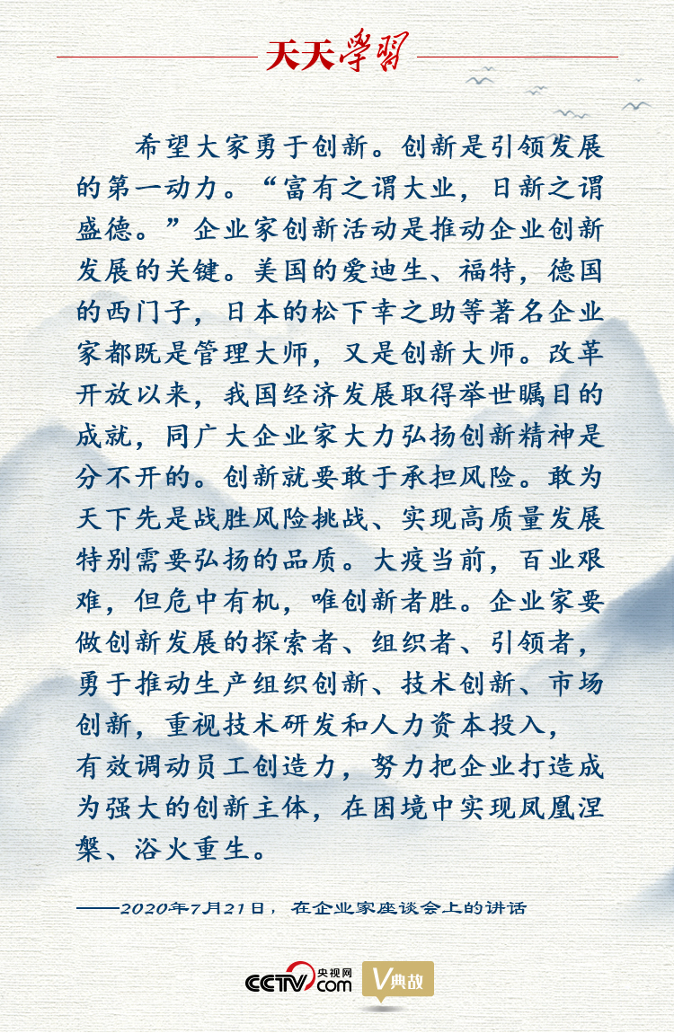 在讲话当中,总书记多次谈到“创新”一词。而创新,也正是国民经济赖以不断发展的内生动力。上个月,总书记在主持召开企业家座谈会时也特别强调了创新对于企业发展的关键作用,并引用了一则典故来阐释创新的重要性。他说——