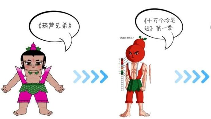 在《福禄篇》中,不仅造型、人物设定参考了《葫芦兄弟》,剧情脉络也与之相近,不少观众将“福禄娃”与“葫芦娃”混为一谈。百度词条收录的“福禄小金刚”基本信息介绍,“保留了原创葫芦娃大多数的设定,唯独造型和综合能力与原版有些不同之处,以及除剧情外其他无变化”。《福禄篇》也是《十万个冷笑话》中最火的篇章之一,相关人物还出现在大电影中,显然是借了“葫芦娃”的ip热度。