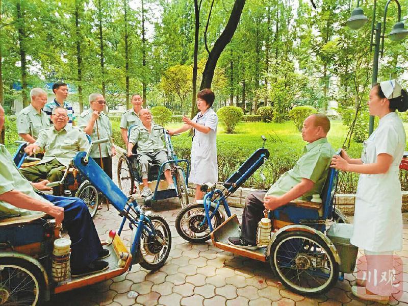 近年来,随着抗美援朝伤残军人老龄化程度加重,休养院引入专业护理服务公司,为这些“国宝级”战斗英雄提供标准化、高质量的护理服务,护理人员由原来的“一对多”变为“一对一”特级护理、专人专管。同时,通过远程会诊平台与北京解放军301总医院、四川大学华西医院、成都军区总医院建立了援助指导、协作共建关系,不定期邀请华西医院博士团、成都军区总医院医疗专家来院现场诊疗,让伤残军人足不出户就可享受到全国一流的医疗条件。