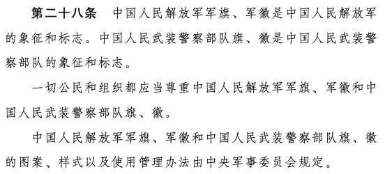修订草案还明确,解放军和武警部队实行文职人员制度,增加关于保护军旗、军徽和武警旗、武警徽的内容。