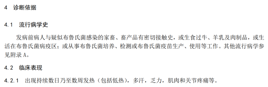 记者在查阅的卫生行业标准中看到,关于布鲁氏菌病的诊断,要求的流行病学史除了“发病前病人与疑似布鲁氏菌感染的家畜、畜产品有密切接触史,或生食过牛、羊乳及肉制品,或生活在布鲁氏菌病疫区”之外,还有一条“或从事布鲁氏菌培养、检测或布鲁氏菌疫苗生产、使用等工作。”