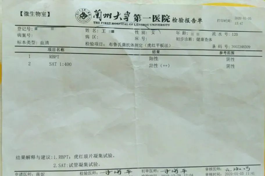 2019年12月,王女士在看到媒体报道兰州兽研所附近出现大量布鲁氏菌阳性后,居住在附近的她才意识到,自己得的是不是布病?