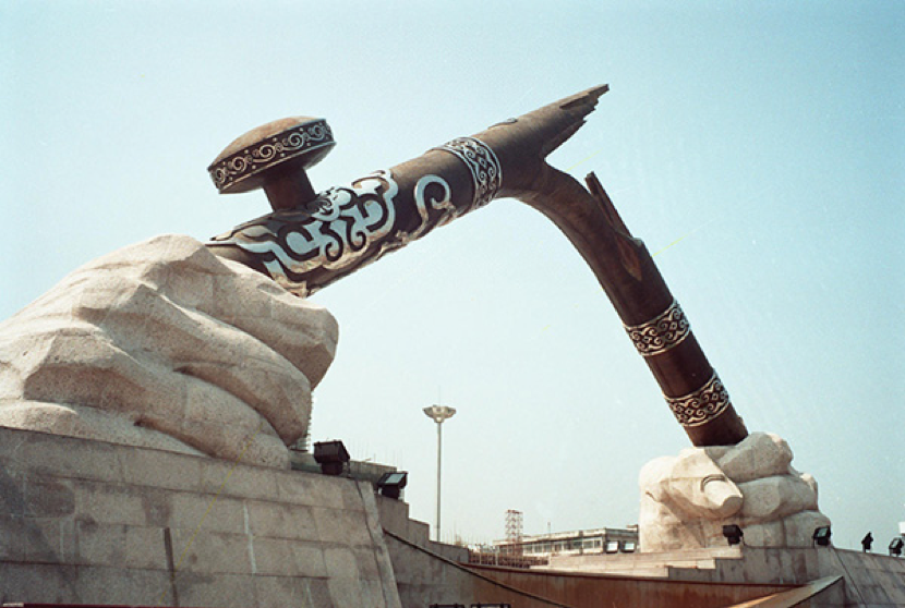 广东东莞市虎门镇太平广场上的一座雕塑——折断的烟枪。图|新华社