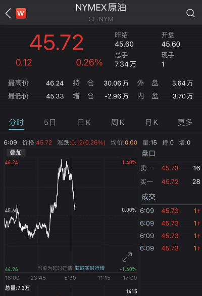 受消息影响,布油日内涨幅一度扩大至1.3%报49.48美元;wti涨1.3%报46.20美元,不久后又纷纷回落。