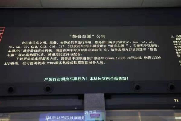 记者从铁路上海站获悉,即日起至2021年春运结束,上海站、上海虹桥站、南京南站等管内客运车站都会在售票大厅、候车室信息显示屏、揭挂栏、相关列车车载视频等处同步开展“静音车厢”宣传,让更多旅客了解这一新服务举措。