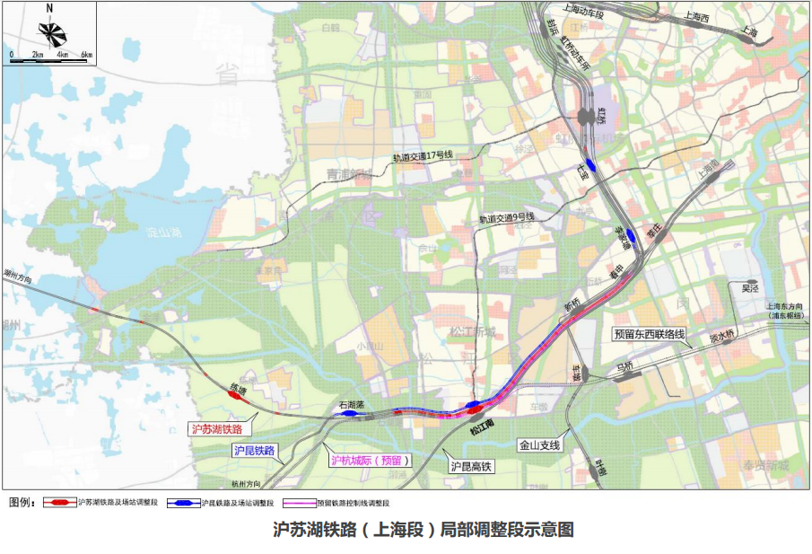 练塘站则由预留车站调整为与沪苏湖铁路正线同步实施车站,位置为大港以西、横山塘以北、规划章练塘路以南区域,规模为2台4线(含正线)。