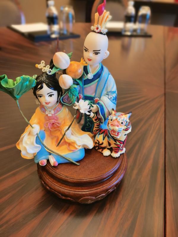 锦江饭店的面塑“和合二仙”,寓意合作共赢,用在亚信峰会宴席上