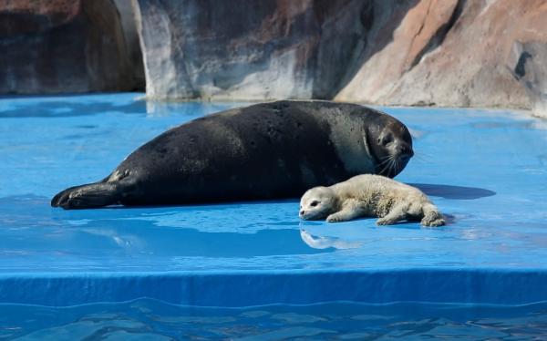 海豹宝宝刚出生时不会吃母乳,且海豹妈妈也是首胎没有“育儿”经验,在海兽保育员的协助下,海豹宝宝终于找到了母乳的位置并成功进食,目前小海豹的状态非常好。