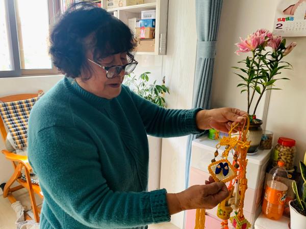 “我做出来的东西,他都是第一个欣赏,我需要什么材料,他也会陪我到城隍庙去买,退休生活很幸福的。”李中玲从架子上拿出自己的作品,小猴子剪纸的每根毛都纤毫毕现,中国结上的小鞋子也勾得精致。丈夫生病后,她再也没有做过,没有精力,身体也吃不消了。