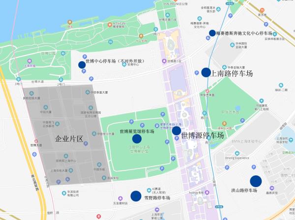 在世博区域的西北角,世博展览馆的西侧,有一片大型企业聚集区,进驻有鲁能、华能、宝武、商飞、中铝等央企国企。从地理位置来看,这一片区北侧紧挨着世博公园,距离世博滨江很近。如果周末能开放部分停车库共享停车,倒也不失为一个选择。杨先生的建议可行吗?